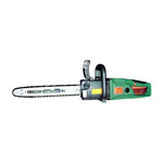 мощность 2000 Вт, напряжение 220 В, длина шины 40 см, шаг цепи 3/8 дюйм, ширина паза 1,3 мм, количество звеньев 56, объем масляного бака 140 мл, расположение двигателя продольное, скорость вращения цепи 13,3 м/сек, бесключевая регулировка натяжения цепи, длина кабеля 0,5 м, вес 4,4 кг.