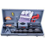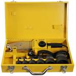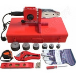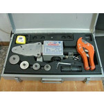 Комплект поставляется в металлическом кейсе и включает в себя сам паяльник, насадки для различных диаметров труб от 20 до 63 мм, перчатки, ножницы, рулетка, отвертка.